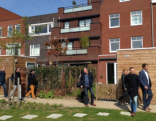 Exclusief voor de deelnemers aan de Leergang Projectontwikkeling was er op 20 april een excursie naar de Vrijmarkt, één van woningbouwprojecten op het voormalige Veemarktterrein in Utrecht.De excursie start in het Paviljoen van sportvereniging Hercules. Thomas van den Doel en Willem Romijn van VORM Ontwikkeling nemen de deelnemers mee in de ontwikkeling van het Veemarktterrein en in het bijzonder van het project De Vrijmarkt. Helaas zijn de gemeentelijke projectleider en de stedenbouwkundige op deze ochtend niet beschikbaar. Daarom geeft Willem een algemene toelichting op het gebied.De Veemarkt is al lang niet meer in bedrijf. Dat is de reden geweest voor de gemeente om een nieuwe visie op het gebied te ontwikkelen. De ligging op slechts negen fietsminuten van het centrum van Utrecht en de goede bereikbaarheid vanaf de snelweg maken de locatie zeer geschikt voor woningbouw. De gemeente wil er een gevarieerde buurt van maken met een verwijzing naar het verleden. Gekozen is om de bouwblokken in het middengedeelte te laten refereren aan de vroegere veemarkthallen. De blokken daaromheen moeten juist een zeer afwisselend gevelbeeld opleveren door variaties in materialisatie, hoogte, breedte, gevelindeling en kapvorm.Willem vertelt ook kort over de eerste twee velden, de Smaaktuin (ontwikkeld door ERA Contour) en de Oase ontwikkeld door VORM Ontwikkeling. ERA Contour heeft de Smaaktuin in een moeilijke tijd in nauwe samenwerking met de toekomstige bewoners ontwikkeld. Bij de Oase kregen de bewoners minder zeggenschap. VORM ontwierp de woningen, de variatie in het gevelbeeld werd bereikt door de bewoners zelf de indeling van de gevel te laten bepalen.Met haar label VORM Collectief won VORM Ontwikkeling ook de tender voor het derde veld. De ontwikkeling van dit veld is een intensief proces van medeopdrachtgeverschap geweest. Dat begon al met het bedenken van de naam ‘de Vrijmarkt’, aldus Thomas. In een aantal workshops zijn de kaders vastgesteld. Vervolgens konden alle kopers samen met de architect hun eigen woning ontwerpen. Om dit soort projecten toch efficiënt en rendabel te kunnen ontwikkelen, heeft VORM Collectief het proces bijzonder goed gestroomlijnd. In dertig dagen worden de kopers van wensenlijst naar ontwerp begeleid. Dat vraagt om goed verwachtingenmanagement. Het woord verwachtingenmanagement valt vaker. Dit is cruciaal om het project tot een succes te maken. Thomas toont verschillende schetsen die de architect heeft gemaakt in samenspraak met de kopers. Een huis in Griekse stijl, met fries en zuilen, springt eruit. Heftig, oordelen de deelnemers. Het roept de vraag op of er ook wel eens wensen geweigerd worden. Dat is niet het geval, maar VORM wijst de kopers er wel op dat bepaalde onorthodoxe keuzes de verkoopbaarheid op termijn mogelijk negatief kunnen beïnvloeden. Eenmaal buiten blijkt het allemaal wel mee te vallen. De detaillering van het Griekse huis is opvallend en tegelijk sober. Door het kleurgebruik en de materialisatie past het goed in het grotere geheel. Kritischer zijn de deelnemers over het contrast met het eenvormige en massief aandoende grijze middenblok. Een kwestie van smaak. Dat geldt ook voor de Oase. Sommigen vinden dat saai met de beperkte variatie in kleur en gevelindeling. Anderen prijzen de rust in het gevelbeeld door meer eenheid in kleuren en materialen. Terug in het paviljoen delen de deelnemers hun observaties en stellen zij hun laatste brandende vragen aan Thomas en Willem. Dan is het tijd om te vertrekken Hotel Oud-Londen in Zeist, waar Philip Smits wacht om het derde blok van de leergang starten met zijn bijdrage over vermarkten en verkoop van woningen.
